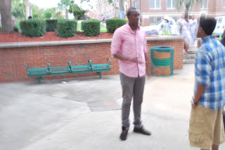 We met Charo, from Miami, on Florida A&M University's infamous "Set". The "Set" is pretty vacant during the summer term but it can be a huge party/fashion show/dance off during Fall months. I applaud her for wearing black in mid day Tallahassee. A good amount of T-shirts are essential, if you plan on surviving a typical N. Florida summer. Props go out for the Billie Holiday screen.